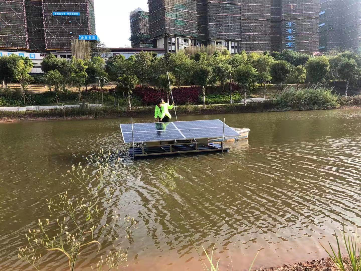 江蘇綠博斯生產(chǎn)的太陽能噴泉曝氣機特有的水體對流形式,在制造垂直循環(huán)流過程中,使表層水體與底部水體交換,新鮮的氧氣被輸入湖底,在湖底形成富氧水層,消化分解底部沉積污染物,廢氣被夾帶從水中逸出,底層低溫水被輸送到表層后,調(diào)節(jié)表層水溫,抑制水體表面藻類繁殖及生長,改善微生態(tài)環(huán)境,強化水體自凈能力,短期內(nèi)改善水質(zhì)。