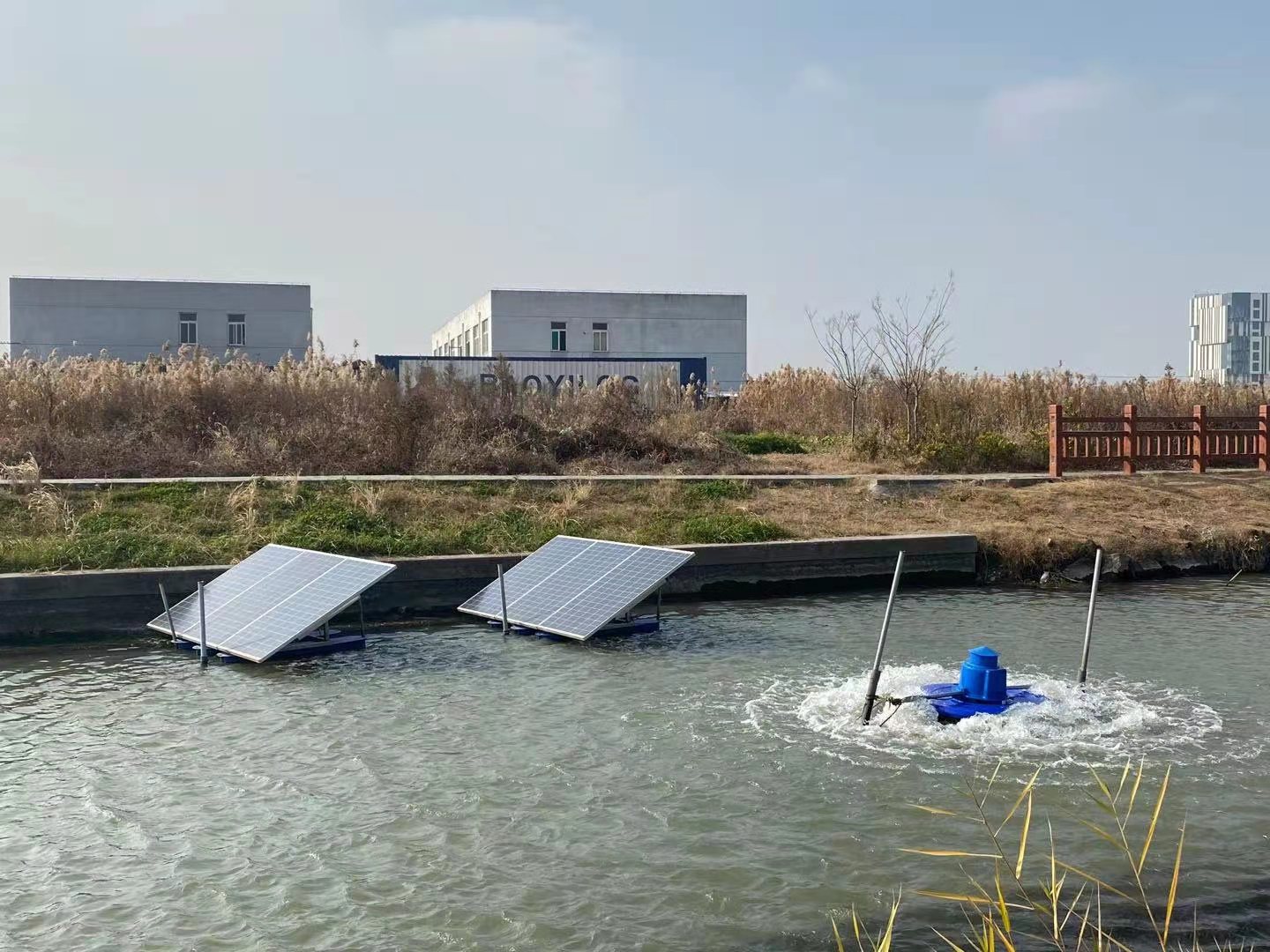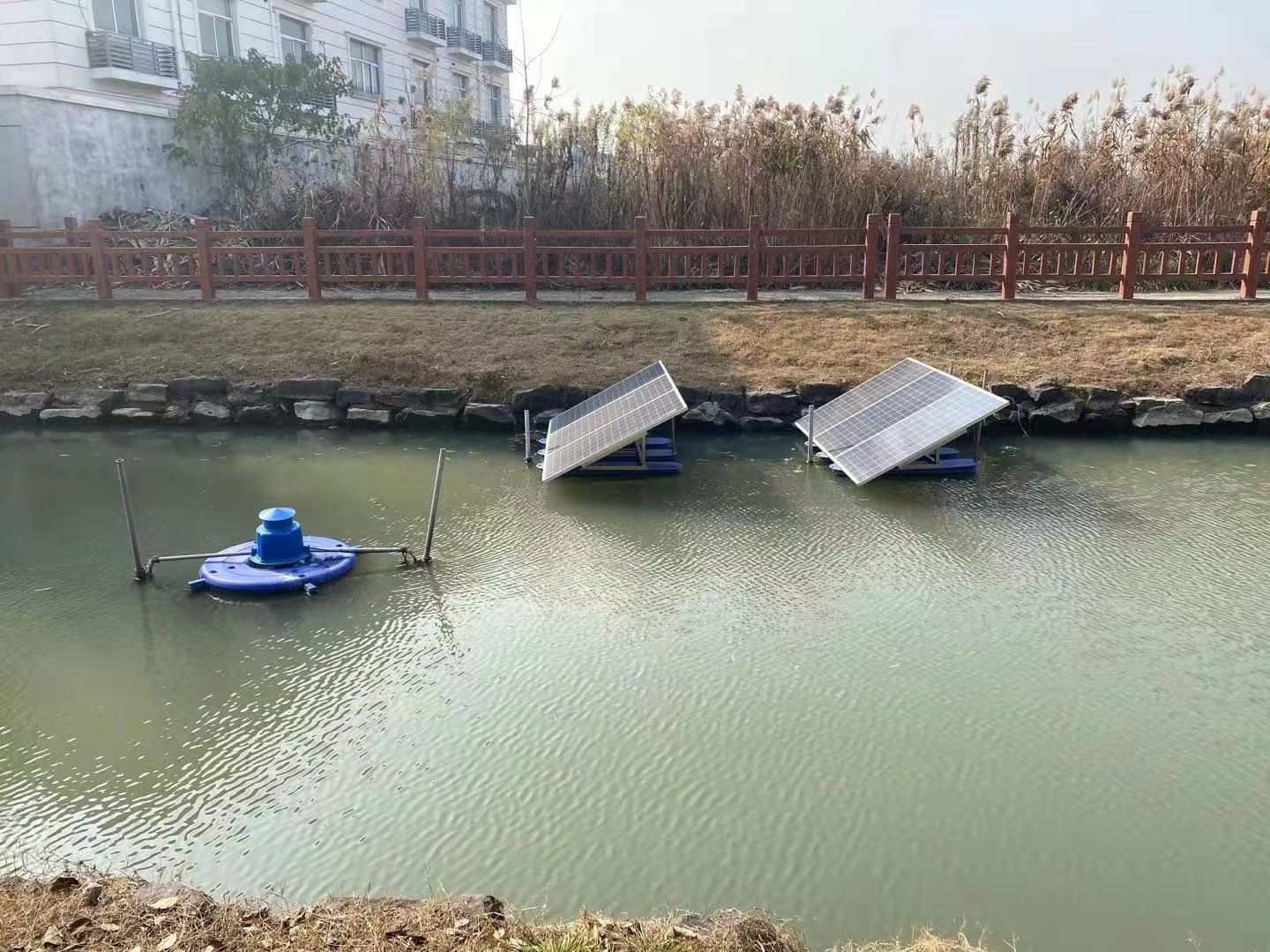 上海嘉定區(qū)太陽能涌浪曝氣機安裝現(xiàn)場