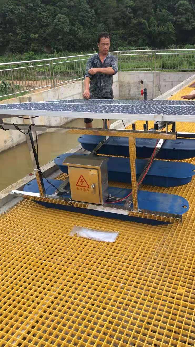 江蘇綠博斯環(huán)保推流式太陽能曝氣機(jī)以太陽能作為設(shè)備運(yùn)轉(zhuǎn)的直接動(dòng)力,設(shè)置獨(dú)特的轉(zhuǎn)盤式復(fù)氧葉輪,通過轉(zhuǎn)盤葉輪旋轉(zhuǎn)撥動(dòng)水循環(huán),將水橫向推流輸送至遠(yuǎn)端,底部缺氧水體向上補(bǔ)充,實(shí)現(xiàn)循環(huán)推流、混合和復(fù)氧等多重功效。江蘇綠博斯環(huán)保推流式太陽能曝氣機(jī)具有以下功能,橫向推流混合復(fù)氧:循環(huán)推流過程同時(shí)是一個(gè)混合、復(fù)氧過程,提高底層水體溶解氧含量,抑制磷釋放。 激發(fā)水體自凈功能:富氧水流改善水體底質(zhì),激發(fā)底泥生物活性,水體自凈負(fù)荷大大提高。 強(qiáng)力推流制造活水:形成橫向和縱向循環(huán)活水流,消除水體自然分層減少上下溫差。